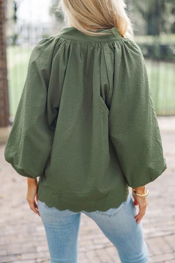 Go With The Grove Olive Scalloped Blouse